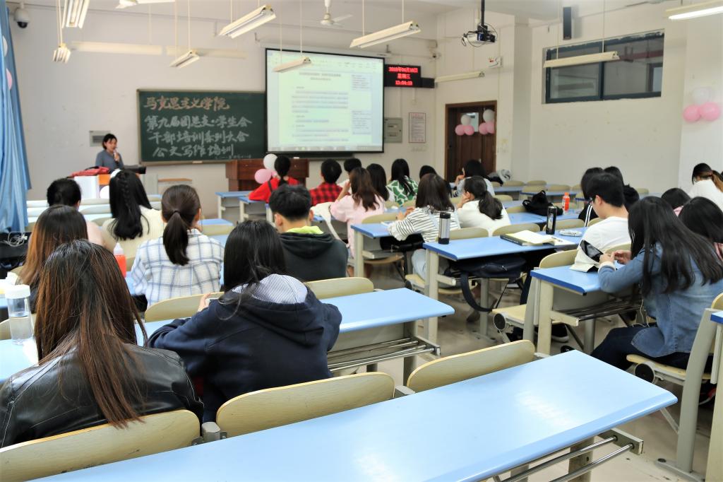 第九届团总支·学生会干部培训系列大会之公文写作培训”活动。本次活动由学生会理调部部长王若涵担任主讲人,学生会干部积极参与此次活动。