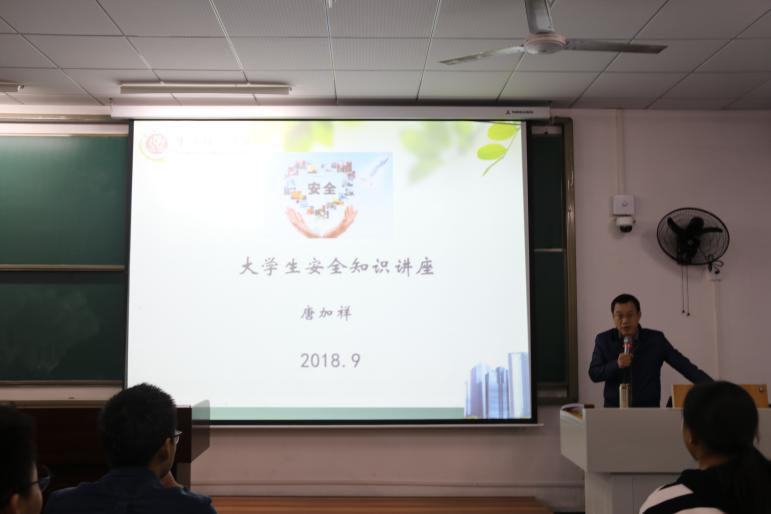 随后,唐处长详细为同学们介绍了消防安全、交通安全、盗窃、诈骗、扒窃等五大类安全问题。讲述过程中,唐处长多次举例发生在我校的真实案例和相关的其他社会事件,并告诫同学们要提高警惕,切勿轻信他人。