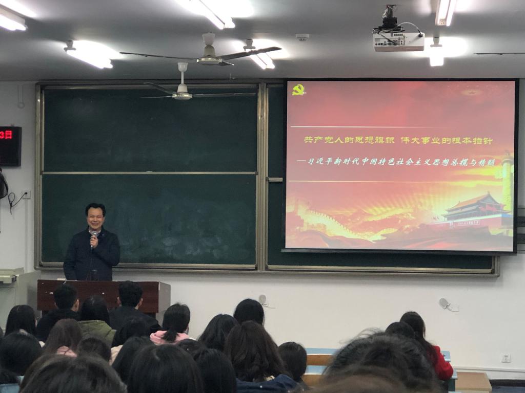 为深入贯彻党的十九大精神,学懂弄通做实习近平新时代中国特色社会主义思想,我校于上学期面向全校学生开设了《习近平新时代中国特色社会主义思想专题摘编》通选课,受到学生普遍欢迎和一致好评。为了更好满足学生学习马克思主义中国化最新理论成果的期待和需求,经过精心的部署和组织,2019年3月13日,我校《习近平新时代中国特色社会主义思想专题摘编》通选课第二轮授课在弘德楼15301教室开讲,学校党委书记曾礼教授讲授第一讲。100余名同学参加了该课程的学习。红龙扑克