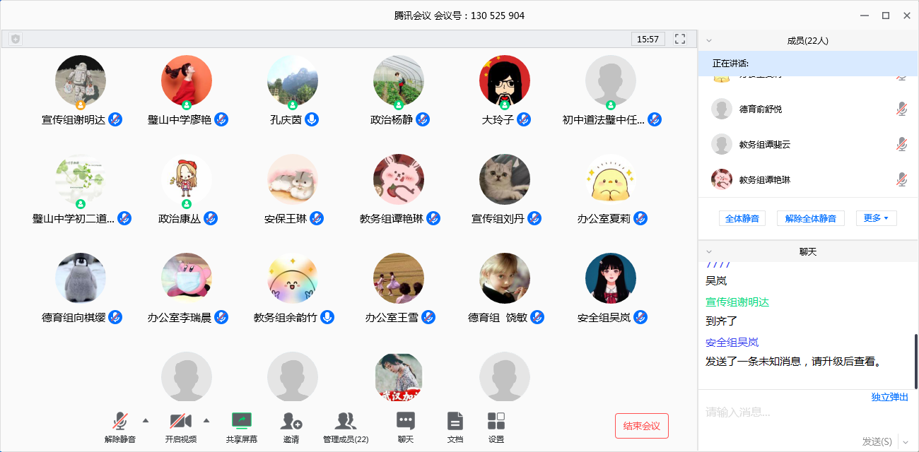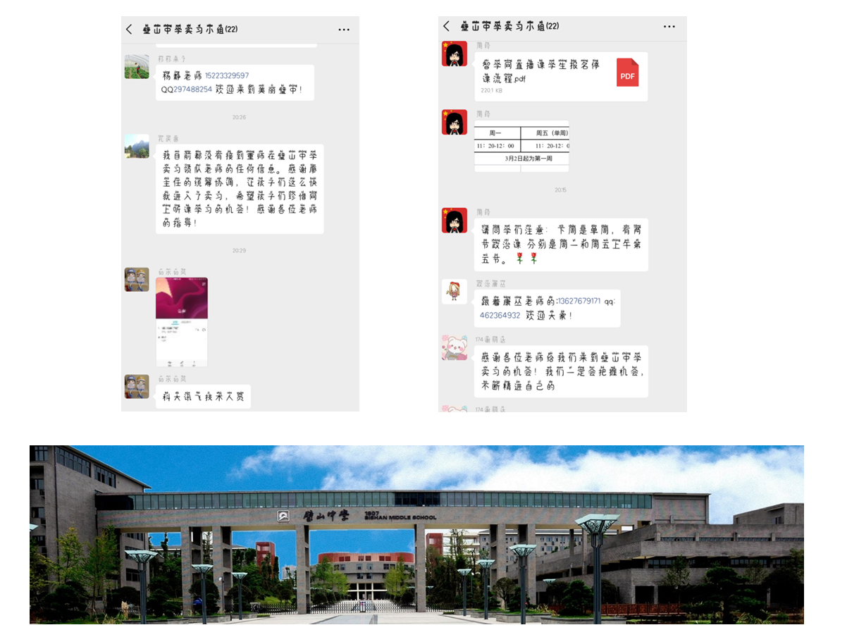 前些日子璧山中学的老师们还在为网课忙得不可开交,这几日便已经把实习的工作安排得明明白白。3月12日我们在疫情期间首次以如此正式的方式与璧山中学的各位老师取得了联系,在会议上廖主任、吴主任相继发言,强调了线上实习的相关注意事项,着重要求我们注意实习期间的安全问题,耐心地听取了同学们关于实习的问题并做出解答……璧山中学的老师们对于前来实习的我们抱有很大的期望,对我们关切有加。我们也一定把握这次宝贵的实习机会,观摩、学习、反思,就像廖主任提到的,多去想想“如果是我,我应该怎么去做”。