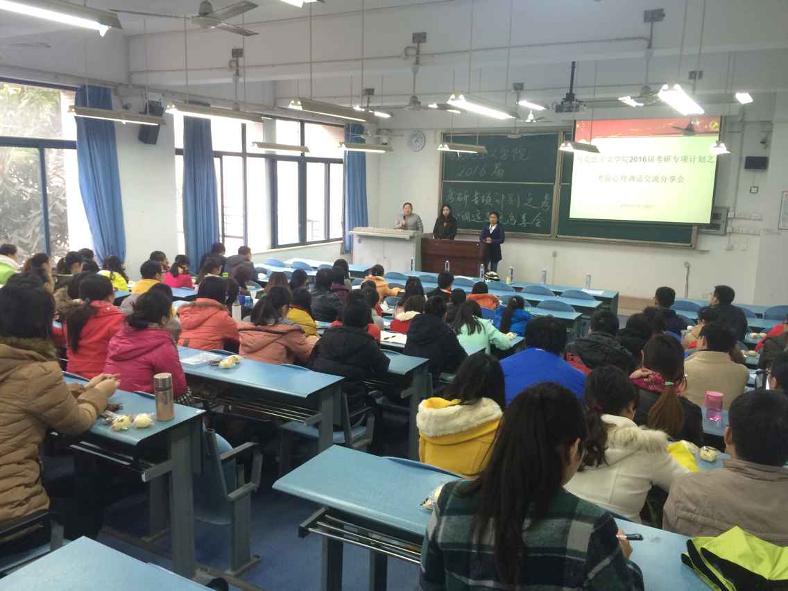 于弘德楼5401教室开展了考研专项提升计划之考前心理调适交流分享会。2011级优秀考研代表余维维、郝梅、张燕霞为主讲人,红龙扑克