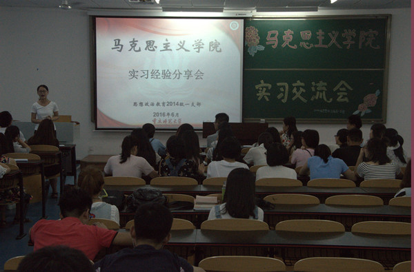 于2016年6月11日19时在励志楼2410教室举办了2013级实习经验分享会,出席本次分享会的有辅导员张晓庆老师和2013级学生代表,2014级大一班全体同学。