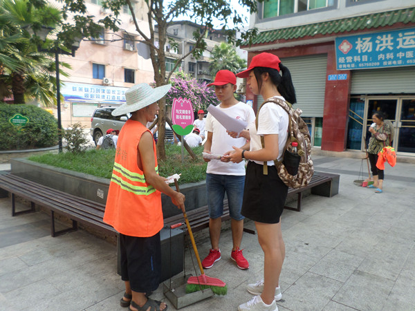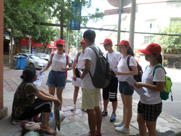 上午8时,志愿者们开始“走街串巷”式的宣讲。此次宣讲的内容主要有两个方面。一个方面是习近平重要讲话精神中的“推动教育公平,发展全民教育”。另一个方面是针对上半年来各大城市爆发洪灾宣讲防洪常识。