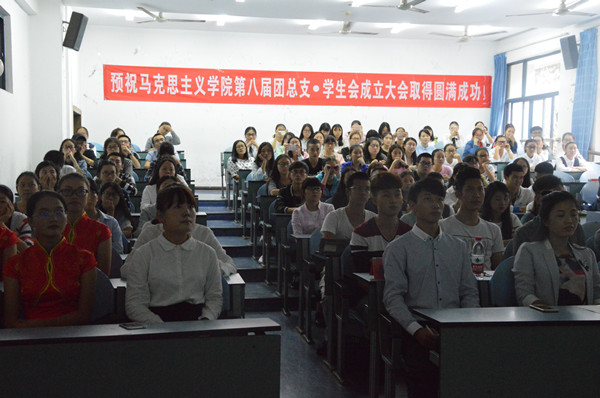 主席团成员,团总支书记马小又老师和2016级辅导员刘洪老师出席本次大会,第八届团总支•学生会成员全体参与。