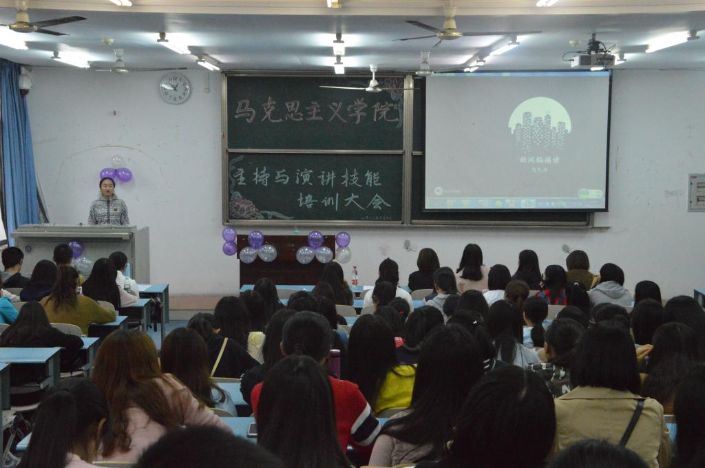 文娱部部长孙路路、马克思主义学院学生会主席马涛以及学生会办公室副主任罗颖、出镜记者李阳悦心出席了本次培训大会。2016级全体学生参与。