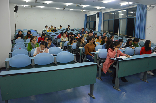 党委副书记姜土生博士在弘德楼5201为考研学生开展讲座,对他们进行考前辅导。 2013级辅导员张晓庆老师出席本次活动。