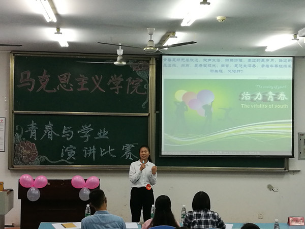 活动在悦耳的音乐中拉开序幕。主持人宣布比赛开始。选手们身着正装在讲台上动情的演讲,赢得了台下观众阵阵掌声。2号选手杨清兆给同学们分享了“让自己成为青春的主宰者,让青春成全我们的野心”的青春誓言;14号选手王泽凤也表达了“态度不用,轨迹不同。青春与学业对立统一”的青春宣言。选手们的精彩演说于热烈的掌声中结束。