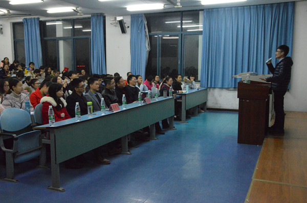 首先,五位研究生依次上台和同学们分享了各自的学习经验。其中,2011级田民告诫大家要发现自己与别人的差距,不断用这些差距鞭策自己,让自己站在更高的平台感受差距;2011级余邦和提出团队复习考研的方法,告诫同学们在考研时应相互激励,共同进步,同学们获益匪浅;2012级汤蕊鼓励大家去追求自己想要的生活,不要惧怕考研或者就业时面临的困难,要勇于挑战,不断突破;2011级李俊则结合自身英语学习经历,和同学们交流英语学习经验,鼓励同学们积极考研。
