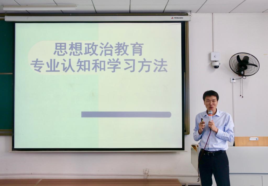 姜土生老师于砺志楼2208教室开展《思想政治教育专业认知和学习方法》专题讲座。辅导员刘洪、向恒、李晓敏、吴烁偲以及2018级全体本科学生参加了本次讲座。