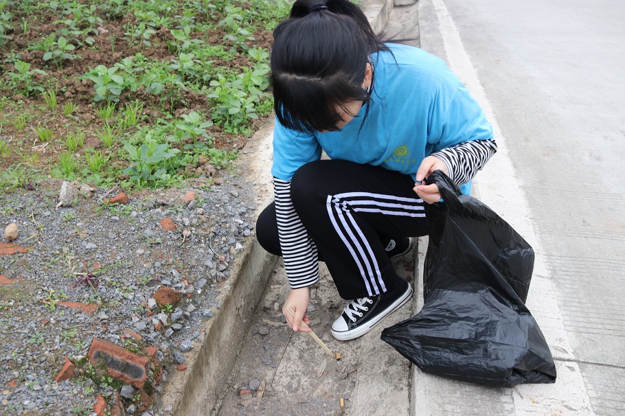 在汇贤楼集合完毕之后,全体人员乘车到达璧山区,开展志愿服务活动。本次活动分为分发讲解宣传单、沿河清理垃圾、进村宣传垃圾分类知识三个部分。志愿者们首先为璧山居民分发垃圾分类传单,并有针对性地向居民们讲解相关知识。宣传单分发完毕后,志愿者们结伴行至璧南河,开展清理步行栈道的工作。尽管路途遥远、天气寒冷,志愿者们仍坚守自己的岗位,有序地清理垃圾。在璧南河步行栈道的清理任务完成后,志愿者们继续前进至璧山华龙社区下属村庄。行进途中,志愿者们不仅清理了沿途村庄道路上的垃圾,而且还入户为村民普及垃圾分类的知识。