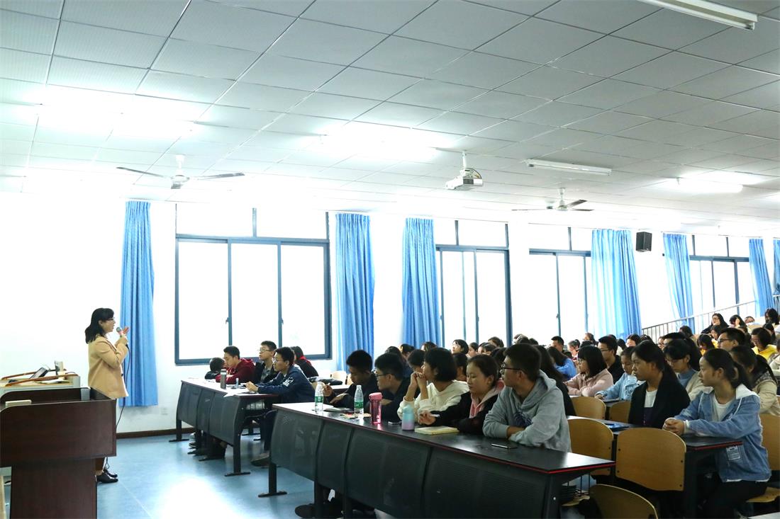 讲座伊始,韩琳老师用“一苦”“一乐”“一价值”三个关键词概括她曲折艰难的从业感受,并特别强调:“教师的苦都有感受,可教师的乐并非人人都能体会。可当你一句不经意的话、一个不经意的动作对一个人的未来产生影响时,你便会理解教书育人的真谛”。接着,韩琳老师从如何协调工作与学习、如何带动课堂气氛以及大学四年规划等版块对同学们的未来生活提出了具体的建议。特别是在关于大学四年规划上,韩琳老师总结出“广度”“深度”“高度”“温度”四个词语,并着重强调“广度”一词。她认为,广度包括专业知识上的广度和社会实践上的广度,这些知识和经验不仅丰富着自己的大脑,也有利于提升自己的气质和修养。韩琳老师这番诚恳的建议引起了同学们的强烈共鸣,并赢得了热烈的掌声。最后,讲座进入提问环节,同学们积极发言并向韩琳老师请教各方面问题,韩琳老师都一一进行解答,讲座现场气氛活跃,同学们态度积极,互动良好。
