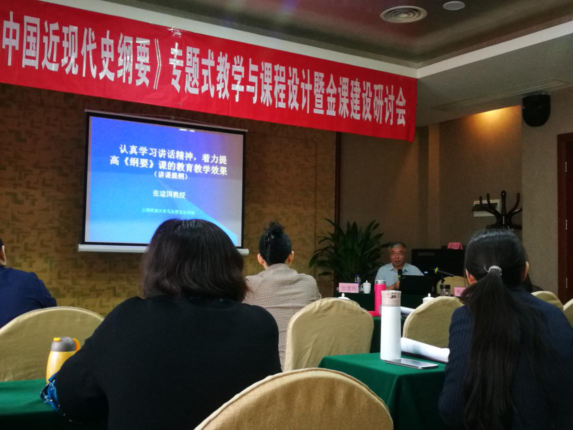 张建国教授,是教育部高校思想政治理论课教学指导委员会《纲要》课委员,马工程重点教材《纲要》编写组首席专家,受邀参加3.18座谈话,也是宣讲团的成员之一。在5月1日上午,张教授作了关于如何学习和深入领会习近平总书记3.18讲话精神的专题讲座,他比较全面地介绍了习近平总书记3.18讲话精神“四个非常重要”(即思政课程非常重要、师资队伍非常重要、教学非常重要和党的领导非常重要)的主要内容,概括了具有站位高、系统强、分析深、科学性、辩证性、务实性、鲜活性和突出问题意识的八个特点,并提出了如何学好讲话精神的建议和要求。下午,张教授结合《纲要》课程作了如何抓住重点,推进专题式教学的改革与创新的讲座,提出了《纲要》课的专题教学应该围绕“四个选择”设计15个专题展开教学,这对我校正在进行的专题式教学改革有很大的指导意义。