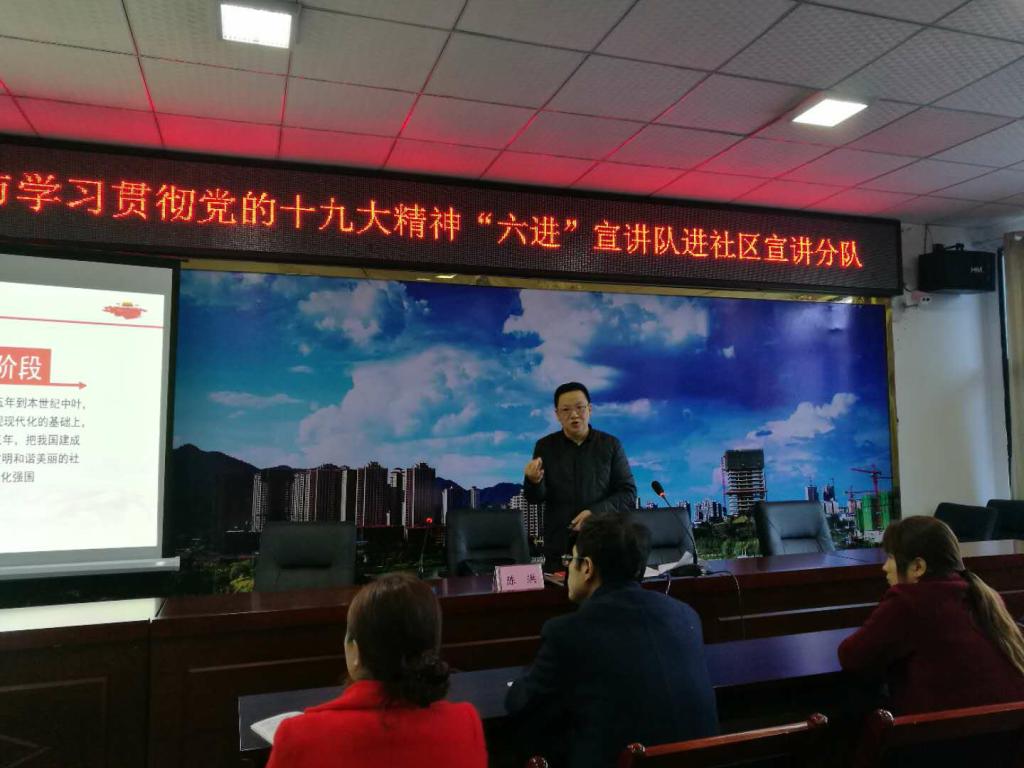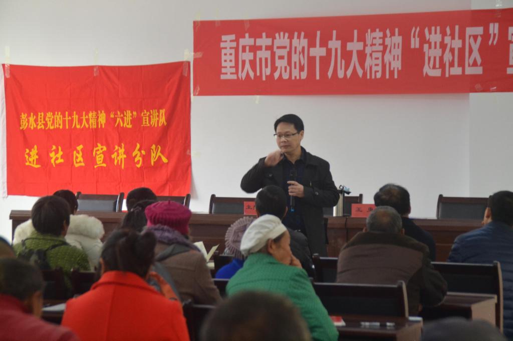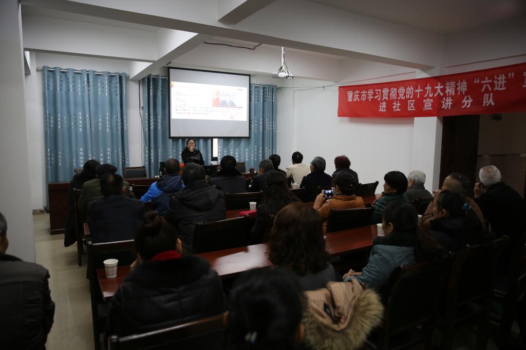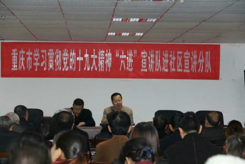学习宣传贯彻党的十九大精神是当前和今后一个时期的一项重要政治任务,开展党的十九大精神宣讲是高校教师特别是红龙扑克 的教师应尽的责任和义务。201711月中旬—126,我陈洪、王勇、祝玉峰、孔宪峰、周秀红、田方林、赵玉民、孔庆茵、郑瑜、吴涯、王开莉等11教师作为中共重庆市委党的十九大精神“进社区”宣讲团成员,深入重庆市垫江、彭水、秀山、奉节、巫山、酉阳、石柱、万盛、忠县、巫溪、云阳等11区县61社区,以扎实的理论功底、通俗易懂的语言、生动丰富的案例6500余名社区群众宣讲党的十九大精神受到社区群众的欢迎和肯定。区县新闻媒体宣讲团成员的宣讲进行了播报,产生了较好的社会反响。