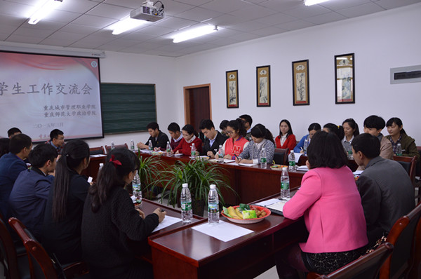 在汇贤楼309会议室召开学生工作交流会。出席交流会的有重庆城市管理职业RedDragon