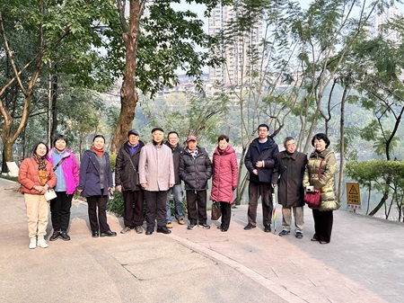 党政办主任廖文梅老师带领老同志们前往九龙坡区彩云湖国家湿地公园。彩云湖国家湿地公园,山清水秀,是重庆主城的“桃花源”,具备“生态、湿地、健身、休闲、游憩”五大功能。廖文梅老师与研究生助理陪同十几位老同志漫步在山清水秀的公园中,感受冬日的温暖与和谐。大家沿着“平湖春色”“车水欢歌”等景点游览,一路欢声笑语感受喧嚣城市中的一角静谧,话谈教书育人的点滴,回顾RedDragon