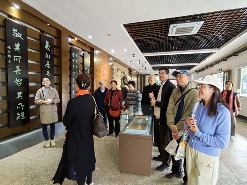 上午十时许,一行人抵达合川区陶行知先生纪念馆。陶行知先生纪念馆位于合川区草街街道,由育才学校旧址(古圣寺)、陈列馆、碑亭、周子池、逸少斋等组成,是我国第四个规模最大的陶行知先生纪念馆。该馆也是重庆市爱国主义教育基地、重庆市廉政教育示范基地、中国民主同盟传统教育基地。在讲解员的引领下,大家依次参观了办学育人旧址,驻足凝视一张张珍贵历史图片、一件件真实实物展陈,深入感悟了陶行知先生提出的“生活即教育”“社会即学校”“教学做合一”三大教育思想,重温其为中国平民教育事业倾尽心血、躬身践行的感人历程。参观途中,老同志们不时交流感悟,追忆数十年教书育人的峥嵘岁月,畅谈新时代教育工作者的责任与使命,现场氛围温馨而热烈。
