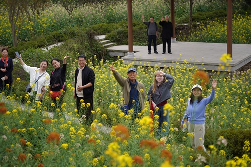 午后,老同志们先后前往陶行知先生纪念馆周边的五彩油菜花田和位于北碚澄江铁厂沟的梨花林踏春赏景。田野间,金黄的油菜花连绵成片,宛如铺就金色地毯;山坡上,雪白的梨花竞相绽放,尽显素雅清新。春风轻拂,花香沁脾,老同志们漫步阡陌小道,或驻足定格美景,或轻声畅谈往昔,尽情享受春日的惬意与美好,欢声笑语中,彼此情谊愈发深厚。