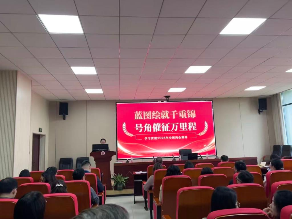 全国优秀教师、校师德标兵兰桂萍教授从2026年全国两会概况、2026年政府工作报告解读、两会精神进思政课堂三个方面作题为《蓝图绘就千重锦•号角催征万里程-学习贯彻2026年全国两会精神》的讲授学习。她强调:政府工作报告聚焦高质量发展、民生福祉保障等重大部署,既是国家发展“施工图”,更是思政课“活教材”,把两会精神有机融入课堂,促进思政课堂和社会课堂有效融合,讲透理论逻辑,讲清发展成就,讲好时代使命,是思政课教师的责任和使命。