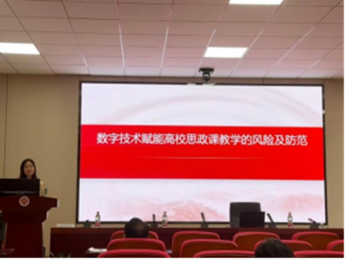 邵二辉老师作“数字技术赋能高校思政课教学的风险及防范”主题分享。她基于文献研究指出,数字化是思政课发展的必然趋势,但同时应警惕算法失当、技术失衡、数据失范等潜在风险。其富有哲学反思精神的剖析,为技术理性与思政教育价值的融合提供了辩证视角。
