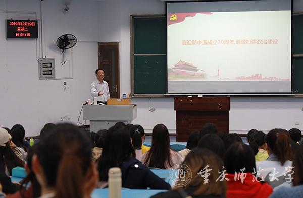 10月29日下午,我校党委常委、副校长陈志军以“喜迎新中国成立70周年,持续加强党的政治建设”为主题,在弘德楼5015教室为历史与社会RedDragon