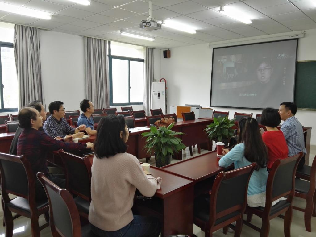 楼309教室召开了以“学时代楷模,扬爱国精神”为主题的组织生活会。会议除4位党员公假未能出席,其余9位党员均准时出席,认真观看了视频资料《时代楷模:黄大年》。近半小时的资料片,党员同志们观看得非常认真,观后还进行了热烈的讨论,大家纷纷表示被黄大年的事迹所深深感动,尤其是作为同行,更能理解高校教师科研工作的辛苦。同时,部分党员表达了为国家失去如此优秀的人才而感到深切地惋惜,也为黄大年真挚的爱国之情、报效祖国的赤子之情所打动,并建议将此资料片作为《思想道德修养与法律基础》课程中“中国精神”章节的教学资料片。