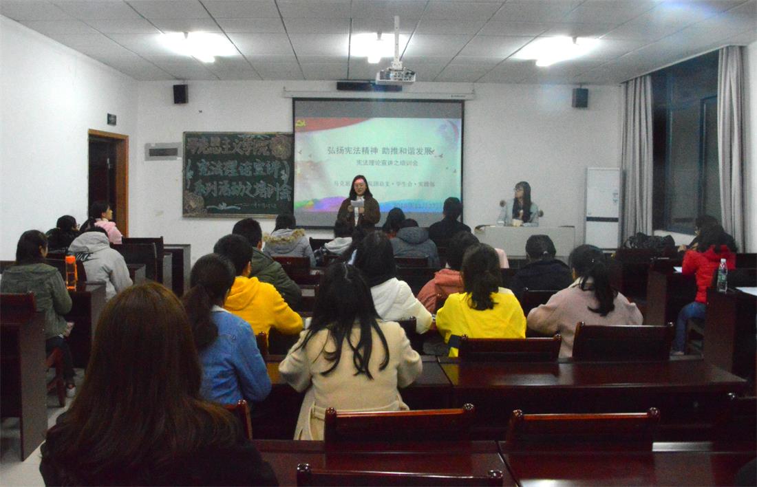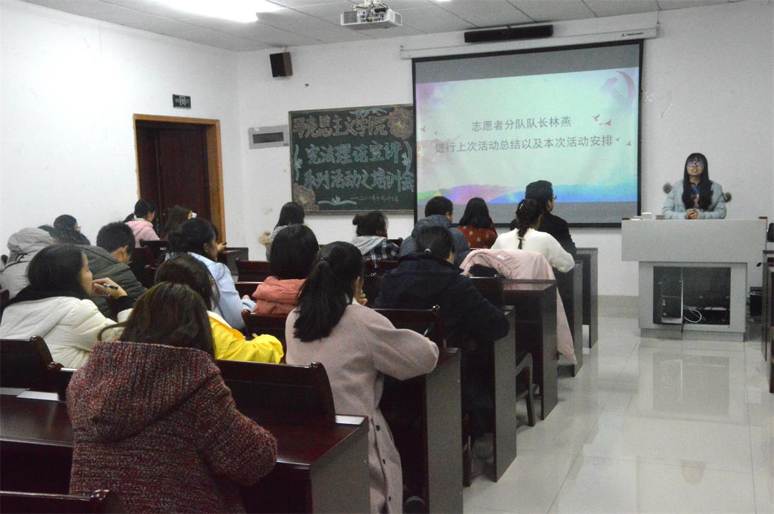 为普及志愿者法律知识,增强其法律意识和法律素养,为即将举办的宪法理论宣讲活动做更充分的准备,2018年11月27日21时30分,红龙扑克(中国)官方网站 特于汇贤楼201教室举办宪法理论宣讲系列活动之培训大会。本次活动特邀志愿者分队队长林燕、理论宣讲团团长夏思雨、志愿者分队副队长黄淦钦作为嘉宾,星火燎原志愿者分队全体成员积极参与本次活动。