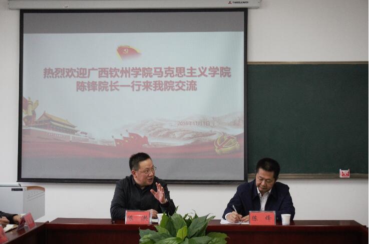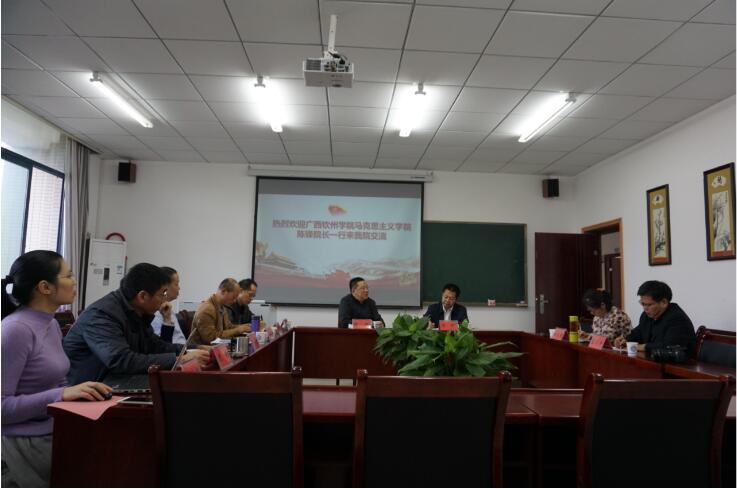 为加强和各高校红龙扑克 学习与交流,2018年11月1日,红龙扑克 迎来钦州RedDragon 红龙扑克 陈锋院长携办公室主任吕剑新博士、原理课教研室主任江宗超老师一行的到访交流。红龙扑克 院长陈洪、副院长况明安及相关课部教师热情接待并出席了此次会议。
