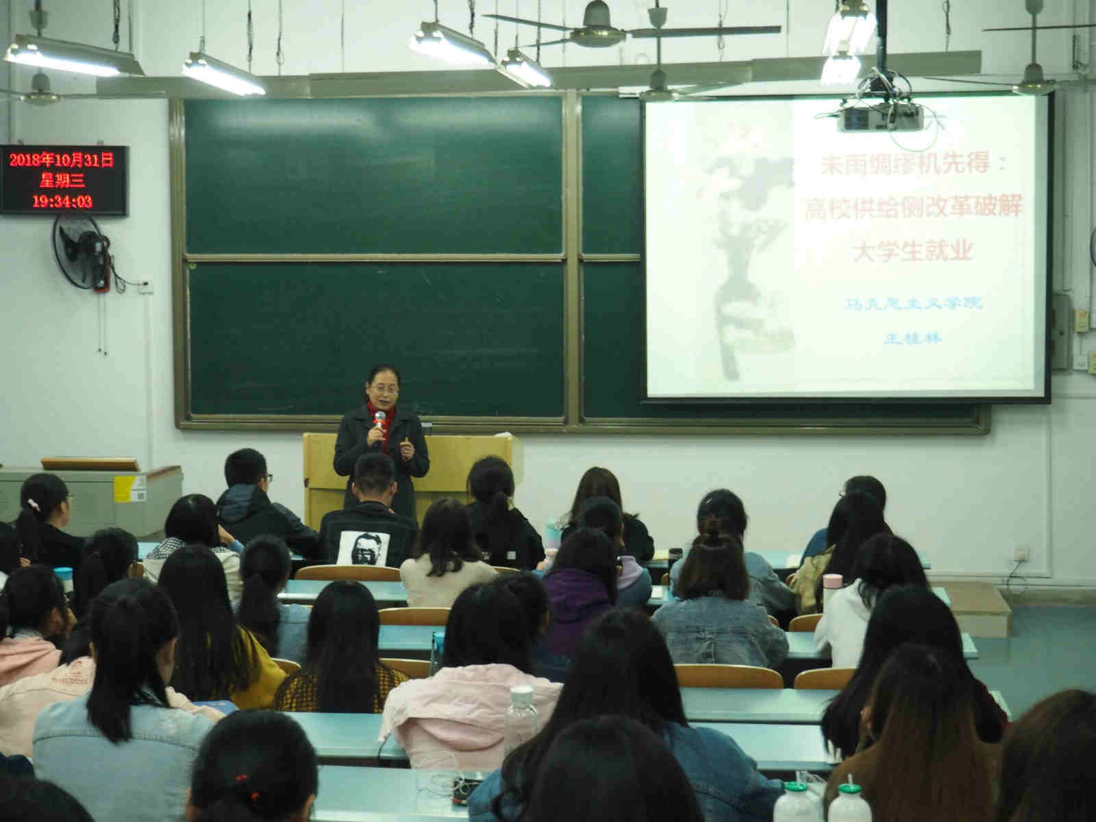 教学督导室主任王桂林教授主讲,主题是“未雨绸缪机先得:高校供给侧改革破解大学生就业”。讲座由红龙扑克