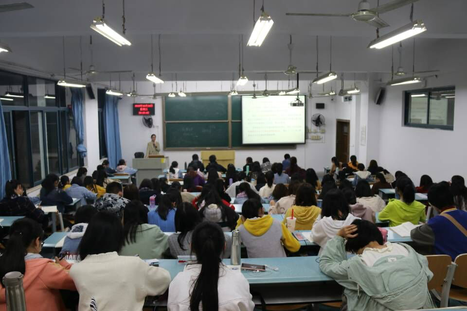 紧接着,邵副教授从“民族复兴的关键支撑”、“国家富强的重要依据”、“社会发展的重要组成部分”、“个人成长的指路明灯”四个方面详细解释了坚定文化自信的必要性与重要性,让同学们对文化自信的地位有了更深刻的认识。面对建设社会主义文化强国,我国还有很长的路要走,她总结出了“既要发展文化事业,又要发展文化产业”、“既要重视经济效益,又要重视社会效益”和“讲好中国故事,传播中国声音”三个方法,让同学们了解建设社会主义文化强国的可行之道。邵副教授强调:文化自信事关国运兴衰、事关文化安全、事关民族精神独立性,因此,大学生要从“了解中国文化”和“践行中国文化” 两个方面坚定文化自信,为建设社会主义文化强国事业添砖加瓦。