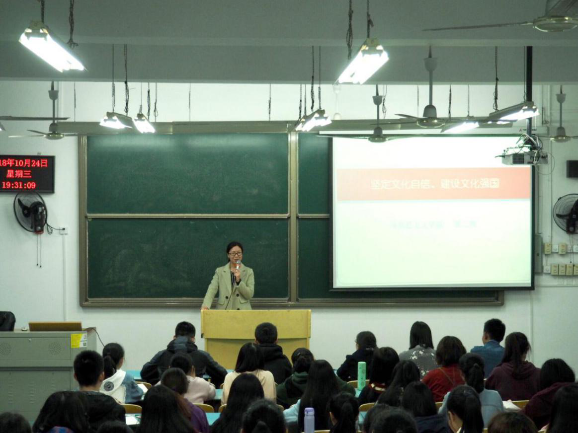 为使学生坚定文化自信,深入贯彻落实习近平新时代中国特色社会主义思想,响应国家建设社会主义文化强国的号召,2018年10月24日晚,“习近平新时代中国特色社会主义思想”通选课在弘德楼15103教室继续进行第五讲,由红龙扑克
