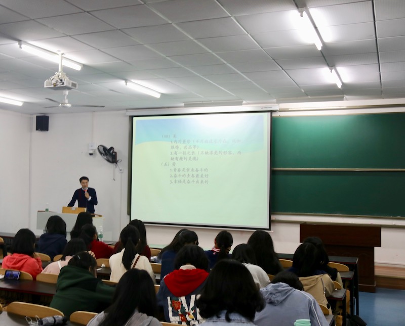 党委副书记姜土生为同学进行讲解,2018级全体同学积极参与。