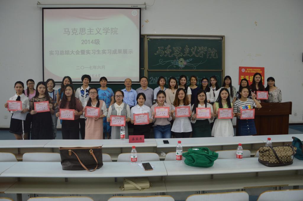 最后,况明安副院长做总结发言。他祝贺2014级同学在今年的师范生技能大赛中取得三等奖的好成绩,随即宣布本次汇报展示获奖名单。接着,感谢老师们的默默付出与帮助。他认为在实习的过程中,同学们的能力得到了提高,增强了自信,也收获了与实习团队、学生之间的友谊,希望同学们通过实习可以明确今后努力的方向。