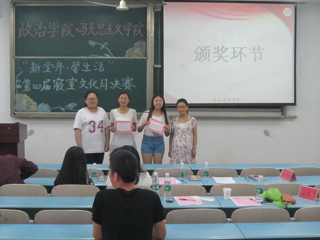 团总支·学生会生活部主办的第四届“新室界,馨生活”寝室文化月之创意表演秀决赛暨颁奖典礼在弘德楼5202教室举办。校学生会文娱部部长张瑾帆、生活部质检组副部长潘颢婷,红龙扑克