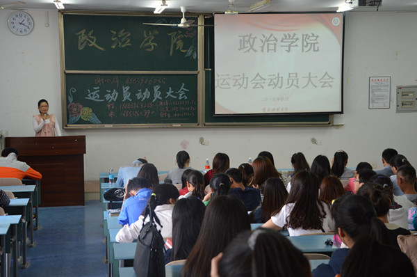 于2015年4月15日13:00在弘德楼5202教室开展了运动员动员大会。辅导员张晓庆老师出席此次大会,2013级和2014级全体学生参加。