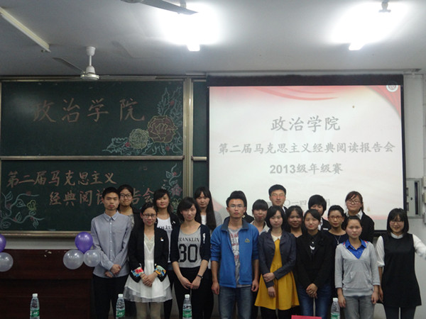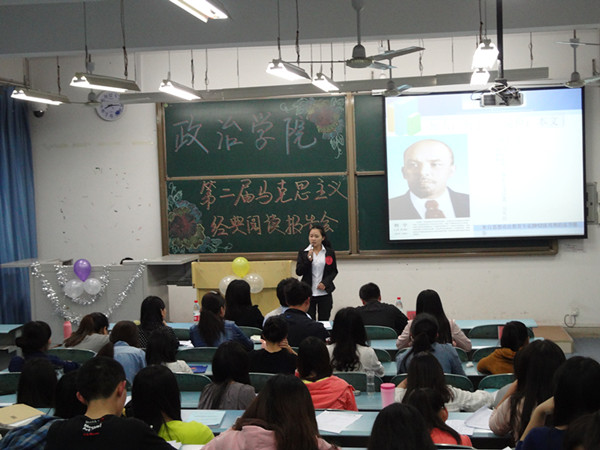 第二届马克思主义经典阅读报告会2011级、2012级、2013级年级赛于2014年4月20日19时分别在弘德楼5101、5103、5201教室顺利开展。2013级辅导员张晓庆老师出席报告会,红龙扑克