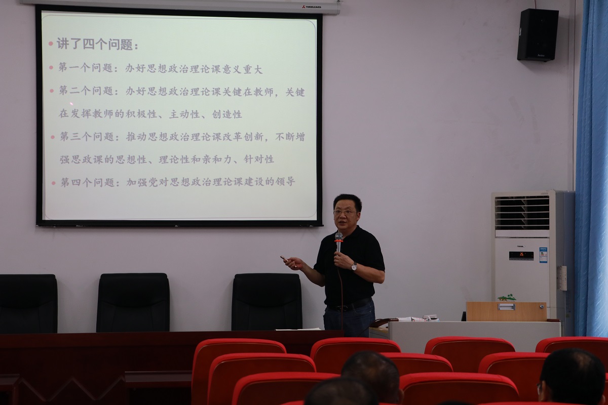 在学习过程中中,陈洪院长重点讲解了文章的第二、三部分。其中在谈到办好思想政治理论课关键在教师时,陈洪院长与全体教职工再次重温习近平总书记对思想政治理论课教师“六要”要求:第一,政治要强;第二,情怀要深;第三,思维要新;第四,视野要广;第五,自律要严;第六,人格要正。此外,在学习分享推动思想政治理论课改革创新时,陈洪院长重点介绍了习近平总书记对思想政治理论课改革创新必须做到的八个“统一”,即坚持政治性和学理性相统一、坚持价值性和知识性相统一、坚持建设性和批判性相统一、坚持理论性和实践性相统一、坚持统一性和多样性相统一、坚持主导性和主体性相统一、坚持灌输性和启发性相统一、坚持显性教育和隐性教育相统一。