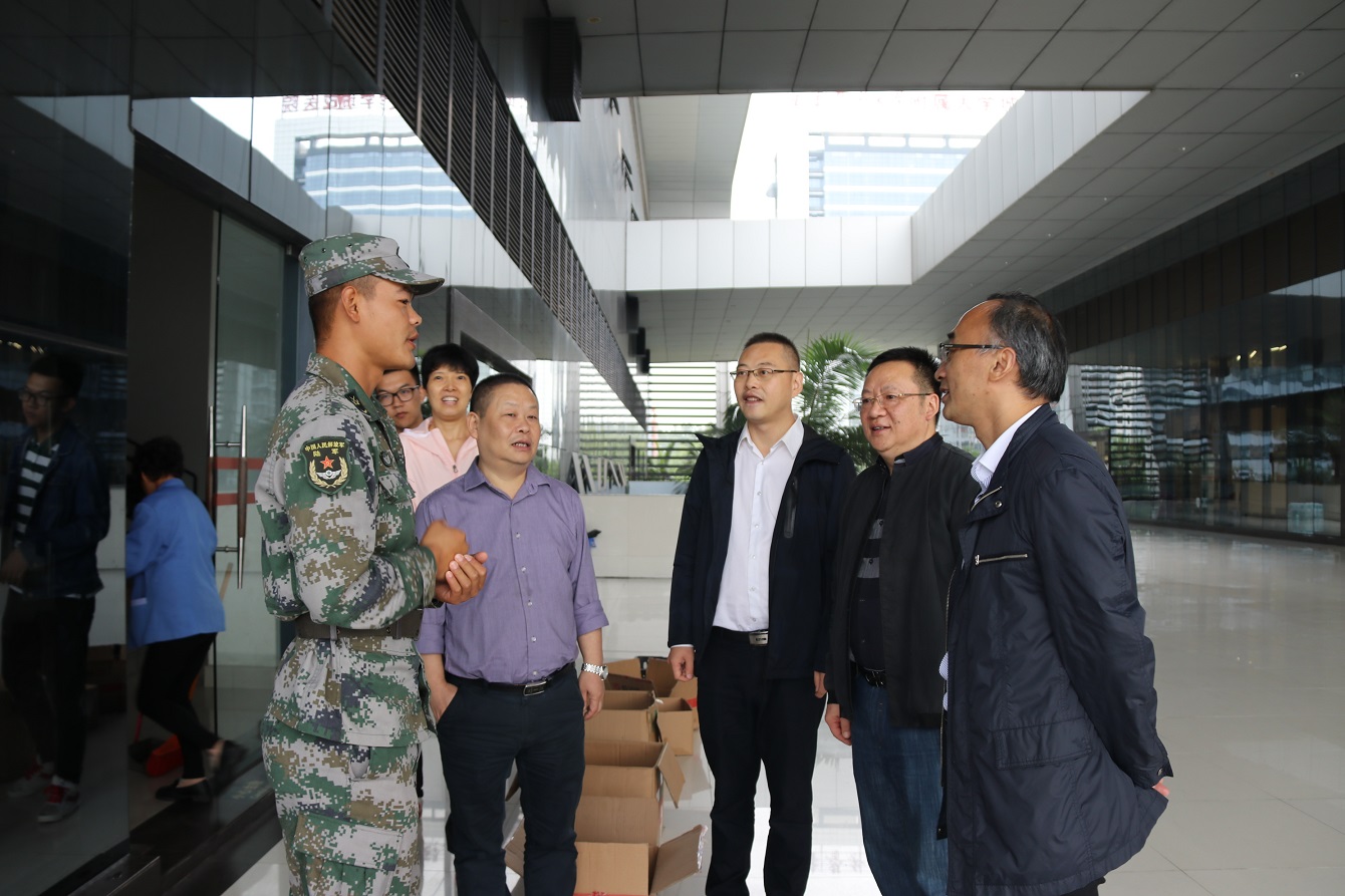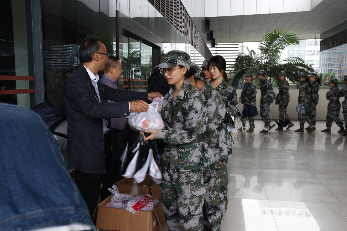 党委书记刘军、院长陈洪、党委副书记方敏、副院长况明安、院团委书记马小又、2020级辅导员张川来到军训场地看望慰问RedDragon