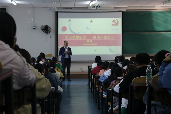 刘军书记的讲话共分为三个专题。一是“为什么入党”,二是“怎么入党”,三是“入党后应做些什么”。首先,刘军书记从党章高度、历史维度和现实角度三个方面向同学们介绍中国共产党,并强调在繁荣发展的当下,新时代青年应更有信心和能力实现中华民族的伟大复兴。