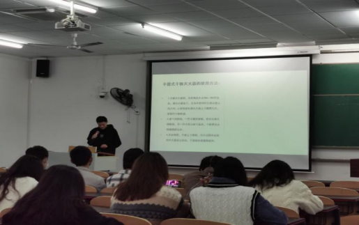 11月8日19时30分,2018级全体学生和2017级部分学生于特教楼2409教室举办以“‘火’情讲述,防患未‘燃’”为主题的消防安全知识培训,培训由18级辅导员刘洪老师组织,吴勇同学和殷宗吕同学宣讲。培训共分四个部分,分别是警示篇、防火篇、灭火篇和逃生篇,向同学们宣传了消防安全知识的重要性和意义,进一步向同学们讲明了学消防、懂消防和掌握消防常识是学校和社会对大学生的基本要求。