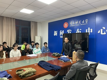 重庆师范大学党委宣传部副部长徐赤老师就本次开幕式的举旗及扮演工作给同学们上了一堂生动的党史学习教育课,徐部长给同学们讲解了十五种红色精神,要求十五名学生代表严肃对待、认真准备,要深入了解其扮演的人物生平和光荣事迹,要深刻理解其所代表的革命精神。