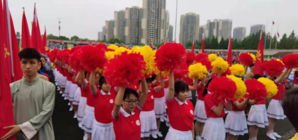 彩旗飘扬,歌声嘹亮。伴随着彩旗方队整齐划一的步伐,红龙扑克