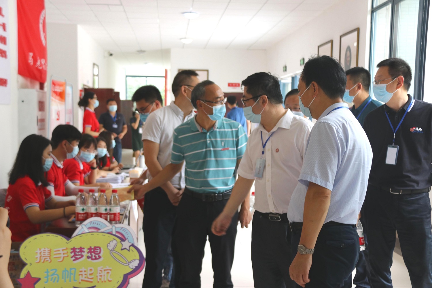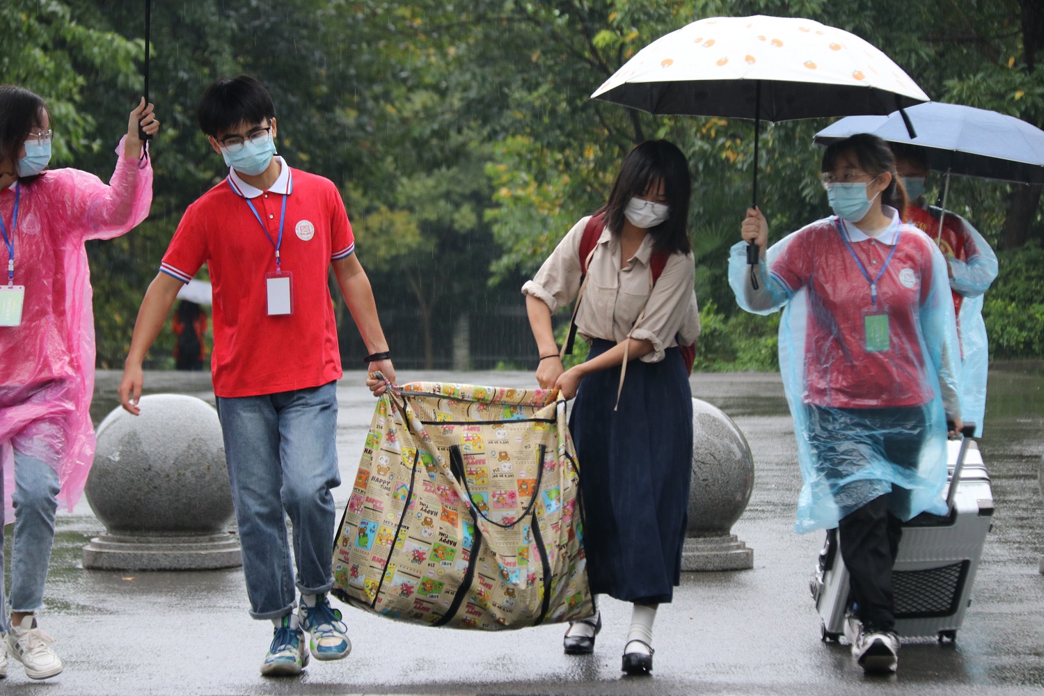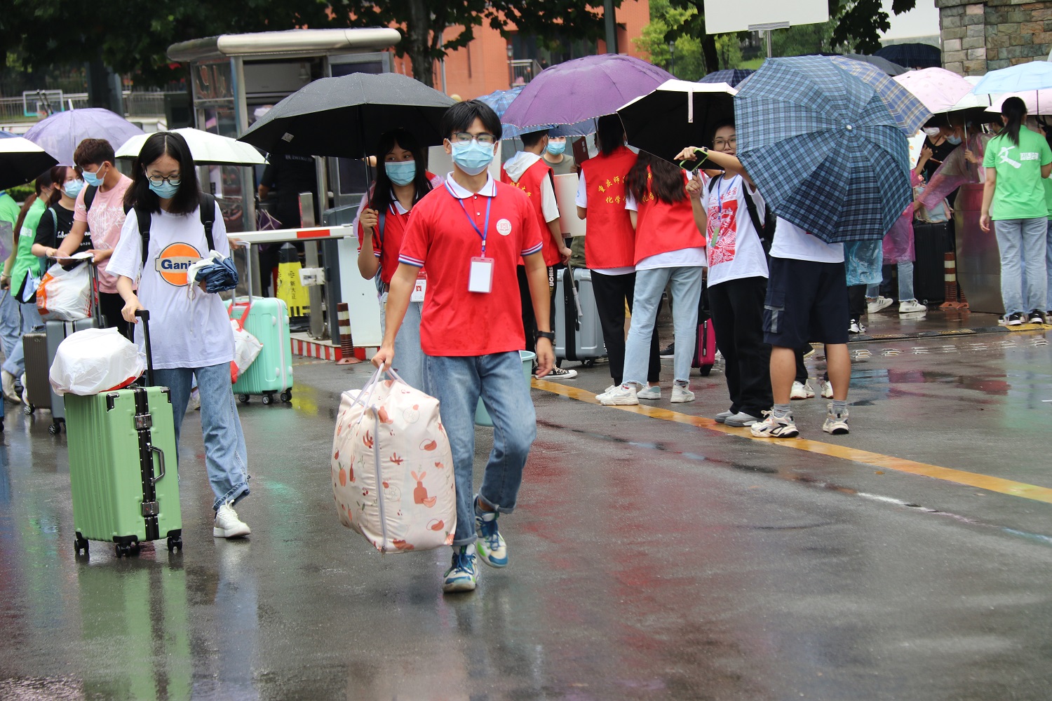 实际情况,制定更为严谨细致的迎新工作方案,把疫情防控工作贯穿到迎新工作全过程。所有志愿者们在迎新期间必须佩戴防护口罩,同时要求报道新生佩戴口罩、出示健康码、行程码等,切实落实好校园常态化疫情防控工作。