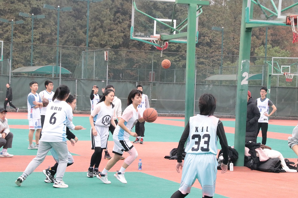 。各年级篮球爱好者到场观看,为运动员加油助威。