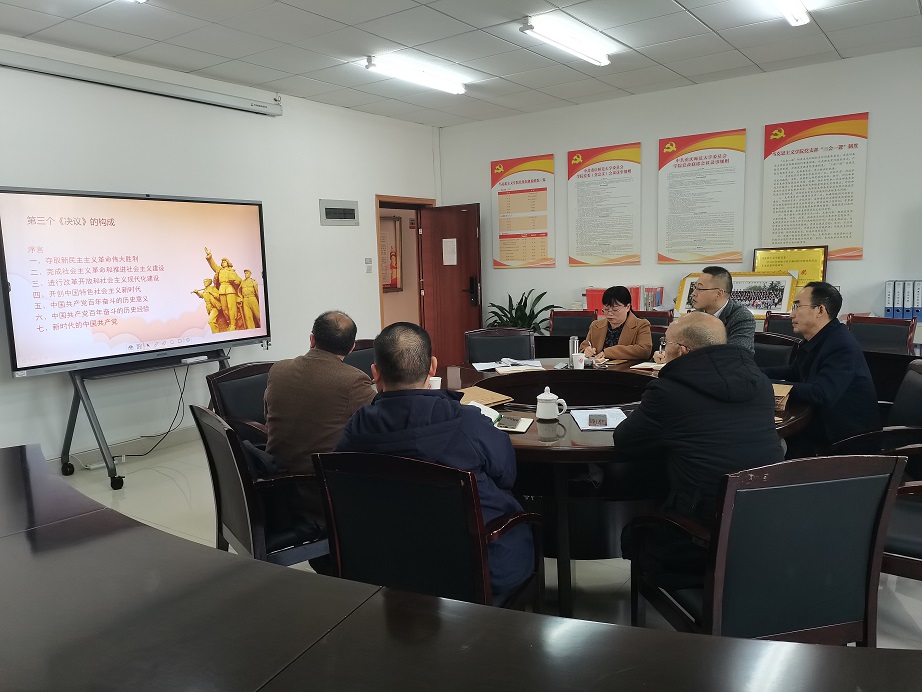 301会议室进行了党的十九届六中全会精神专题学习。本次学习会由党委书记李晓燕主持,党委委员田方林同志领学,全体党委委员、纪委委员参加了学习。