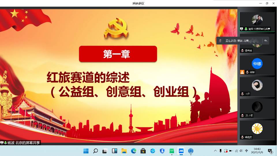 邀请了经济学博士、北京云网联科技有限公司联合创始人、教育部中国国际“互联网+”大学生创新创业大赛专家委员及团中央“挑战杯”大赛评委、中国高等教育学会“双百计划”专家、中国教育创新研究院特邀专家,被誉为“红旅老杨”的杨波老师,通过腾讯会议平台,为RedDragon