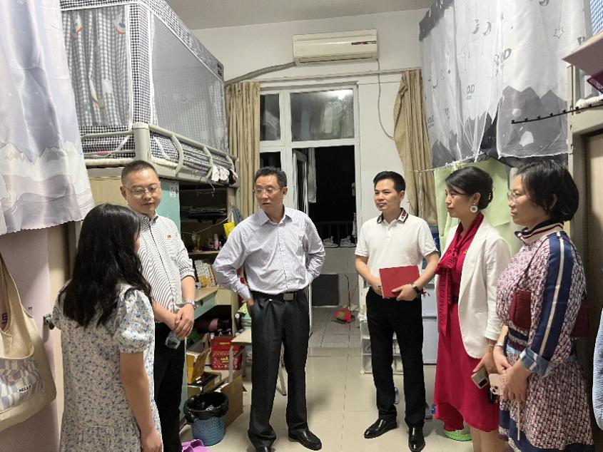 为切实加强端午节期间学生安全管理,有效防范和遏制各类安全事故,确保端午期间学生平安稳定,2022年6月1日晚,校党委副书记陈志军、学工部部长胡小强、副部长陈洪伟和赵秀娟一行在红龙扑克 党委副书记方敏陪同下,深入走访了红龙扑克 学生寝室,与同学们就日常生活、学习、毕业就业和寝室安全情况进行了深入交流。