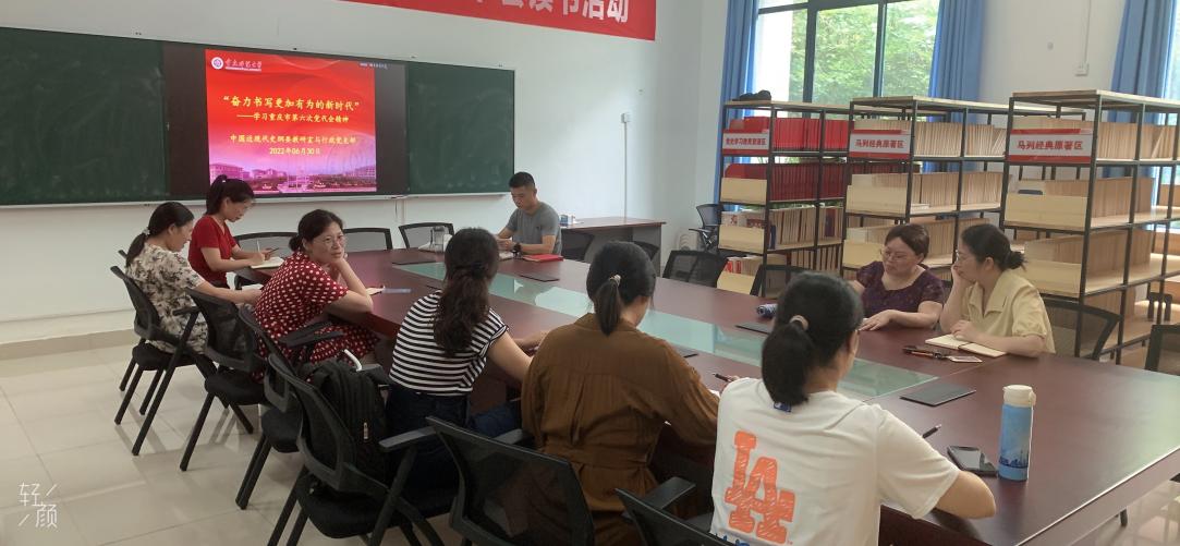 楼107会议室,纲要教研室与行政支部开展了主题党日活动,全体支部党员围绕重庆市第六次党代会精神进行了深入的学习与交流。