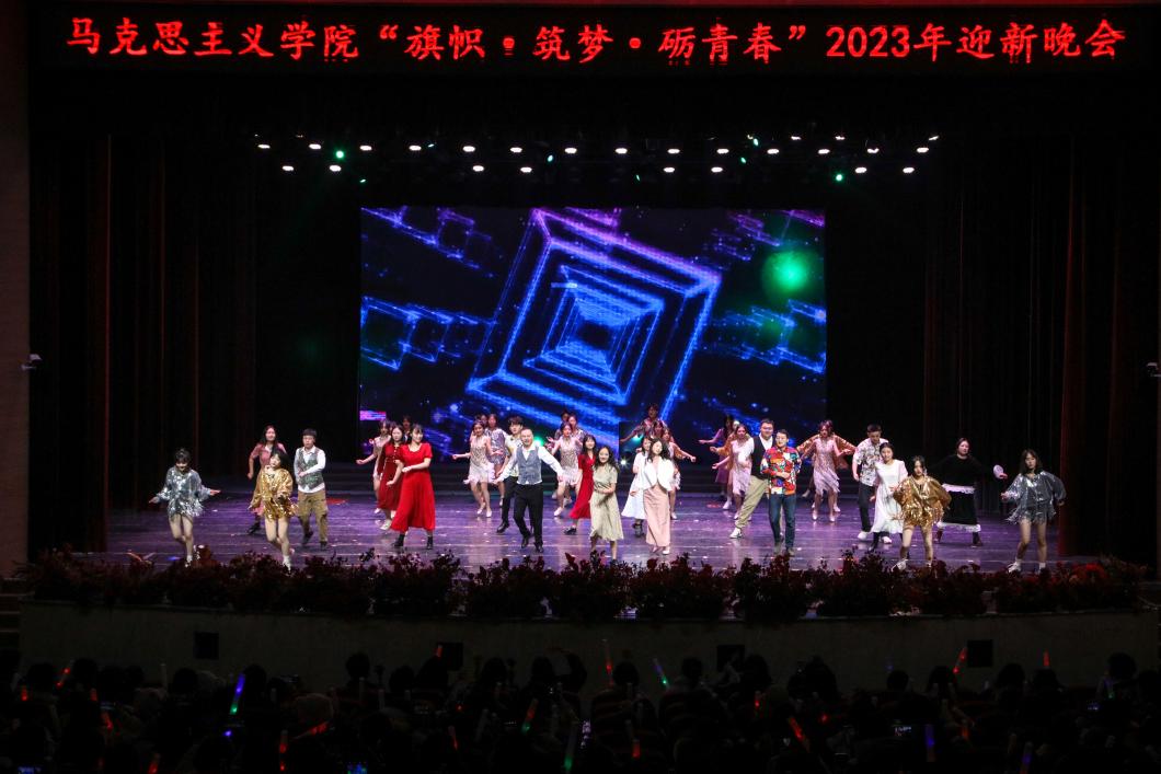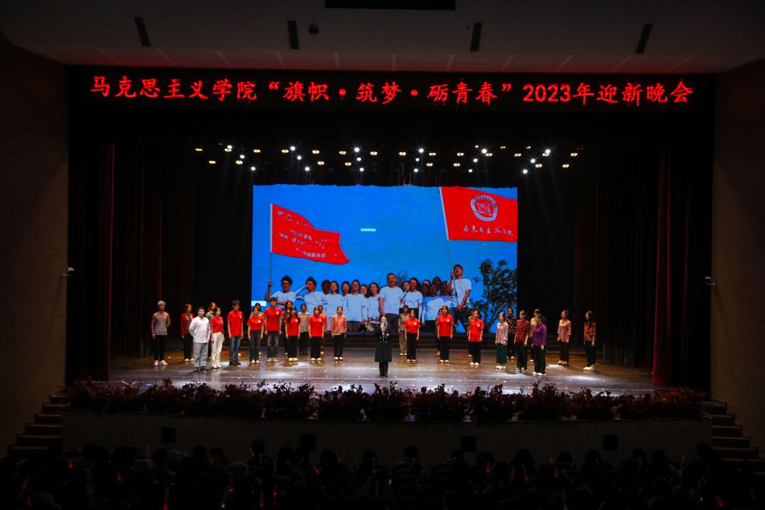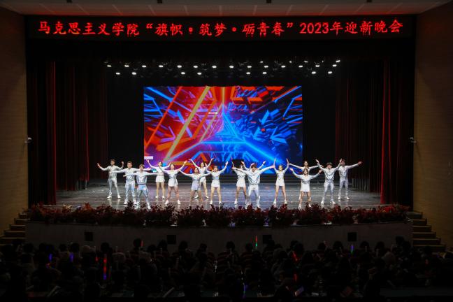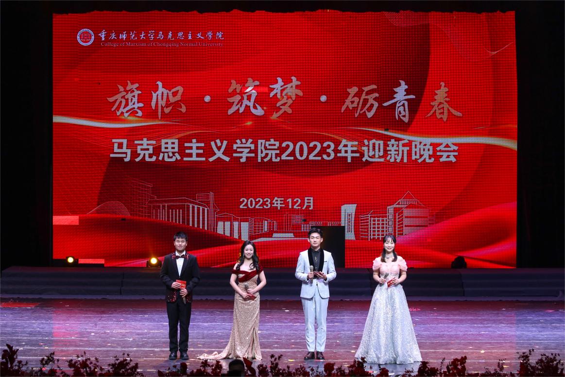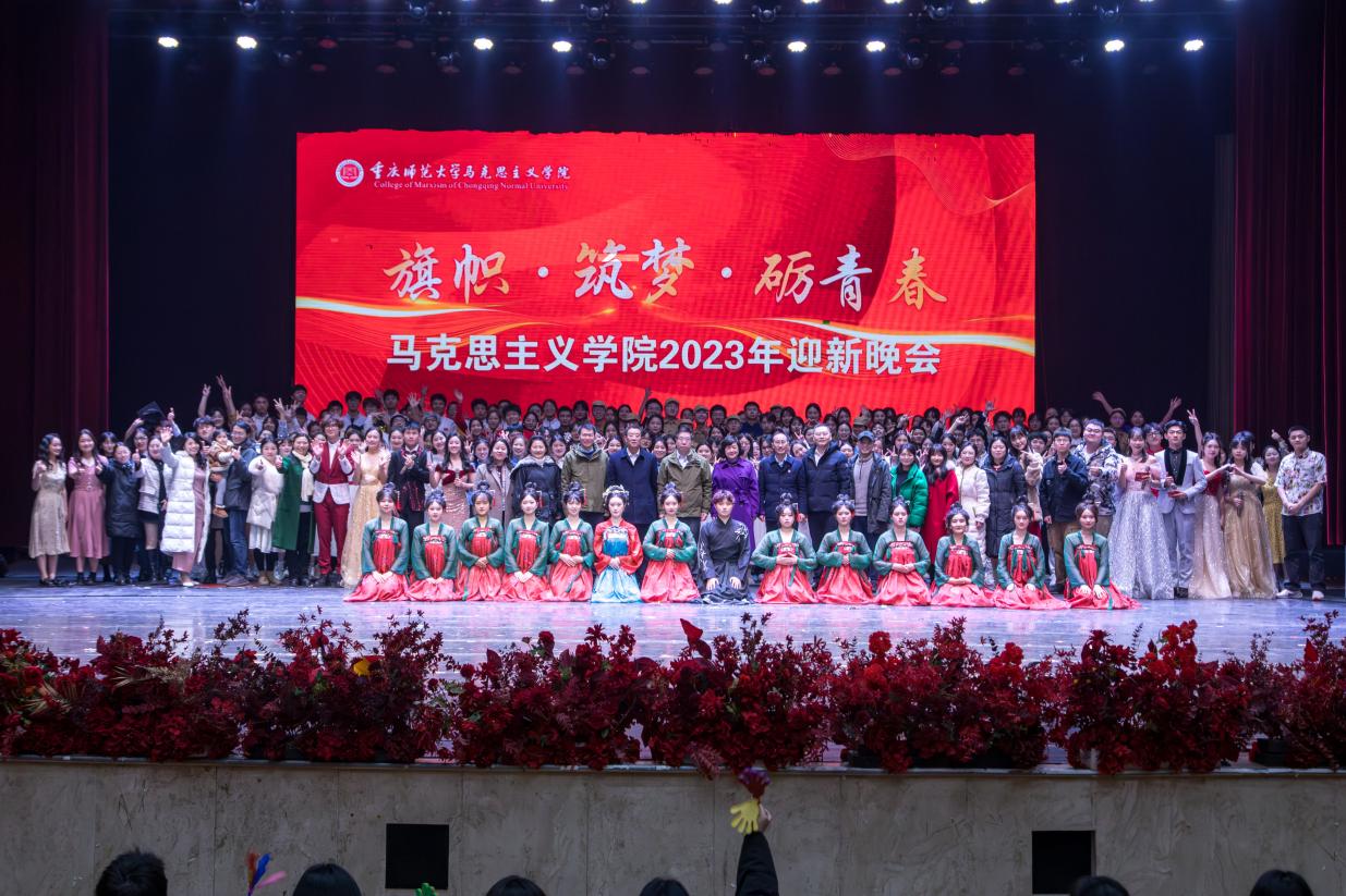 于校友会堂演出厅举办以“旗帜•筑梦•砺青春”为主题的2023年迎新晚会。重庆师范大学党委副书记、校长、RedDragon