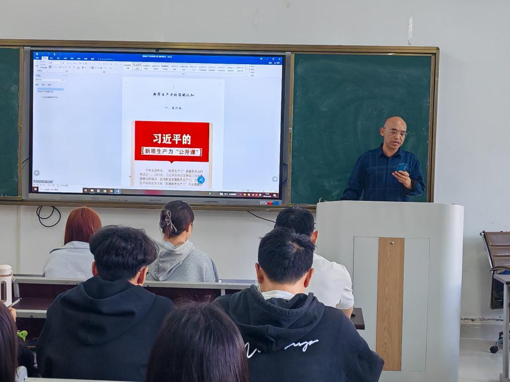 第二,对“新质生产力”的全面学习。李剑书记带领我们学习了《新质生产力的简明认知》,勾画了“新质生产力逻辑关系图”。通过学习支部全体党员同志对“什么是新质生产力”有了全面的认识,明白“发展新质生产力”的原因,以及对“如何发展新质生产力”的措施有了进一步的了解。