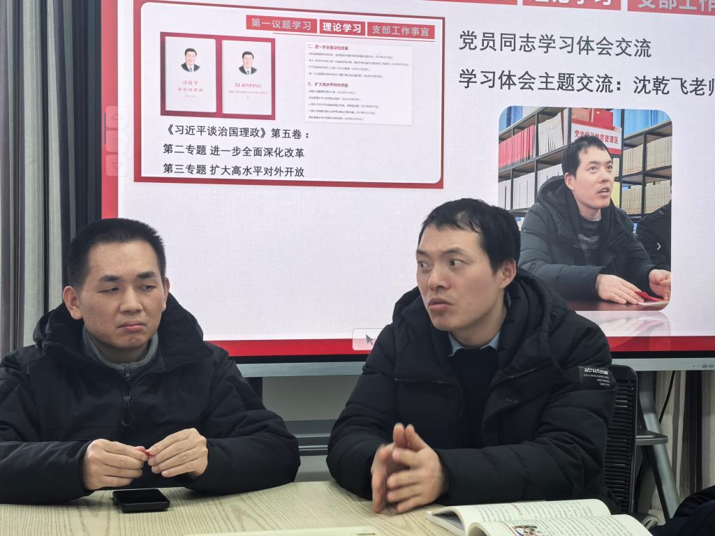 理论学习方面,仲娜同志围绕《习近平谈治国理政》(第五卷)第四专题“因地制宜发展新质生产力,实现高质量发展”和第五专题“一体推进教育科技人才事业发展”的内容进行了领学。她在领学中指出,当下我国面临经济领域的新形势新情况,“发展新质生产力特别重要”,同时需要统筹好各方面关系,它直接关系到“十五五”规划目标的完成和2035年战略目标的实现。沈乾飞以农业领域的高质量发展谈了自身体会,认为农业发展不仅仅是现代人才和科技的问题,也是经济社会发展的问题,当下“脐橙”等某些农产品的滞销反映了我们农业消费领域的新变化新动态,其解决不仅需要从生产端还需要从消费端尤其是从提高收入着手。